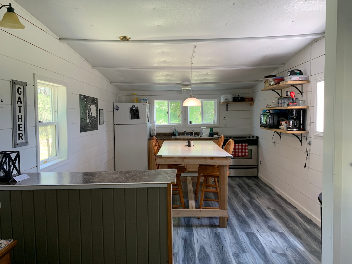 Located in the heart of the Sandhills, Kinkaider Brewing Company is a farm craft brewery with a newly finished attached bungalow, creating the utmost brewery experience. You can sample, dine and enjoy to your heart's delight and then wander a few steps to your home away from home. This is the perfect weekend getaway for intimate or larger gatherings. This 1500 square foot space sleeps 6-8 comfortably, with a spacious living area great for socializing, and a walk-in shower complete with stocked BEER FRIDGE!!