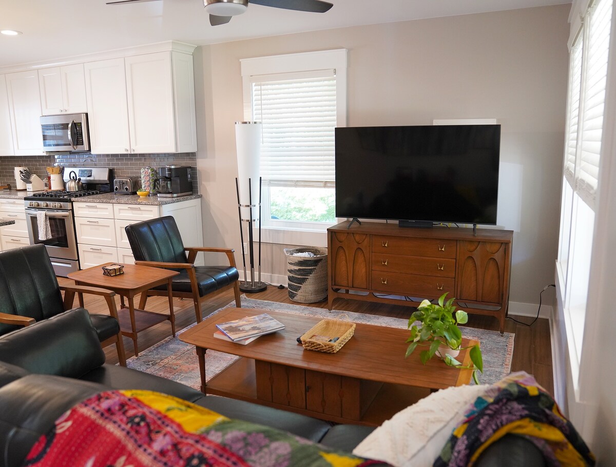 Το άνετο εξοχικό μας του 1930 φιλοξενεί έως 6 άτομα. Ο ανοιχτός χώρος καθιστικού/τραπεζαρίας διαθέτει καναπέ-κρεβάτι queen δίπλα σε μια πλήρως εξοπλισμένη κουζίνα. Το ξεχωριστό υπνοδωμάτιο διαθέτει κρεβάτι queen size και βρίσκεται δίπλα σε ένα μικρό μπάνιο με νιπτήρα, τουαλέτα και ντους. Μια σπειροειδής σκάλα οδηγεί σε μια σοφίτα που παρέχει έναν άλλο χώρο για να ξεφύγετε και να χαλαρώσετε, με διπλά στρώματα σε 2 ξεχωριστές ενσωματωμένες πλατφόρμες. Περιλαμβάνεται το Comcast Xfinity WIFI και η καλωδιακή τηλεόραση. Κεντρικός κλιματισμός. Και επιπλέον καφές στο ψυγείο.