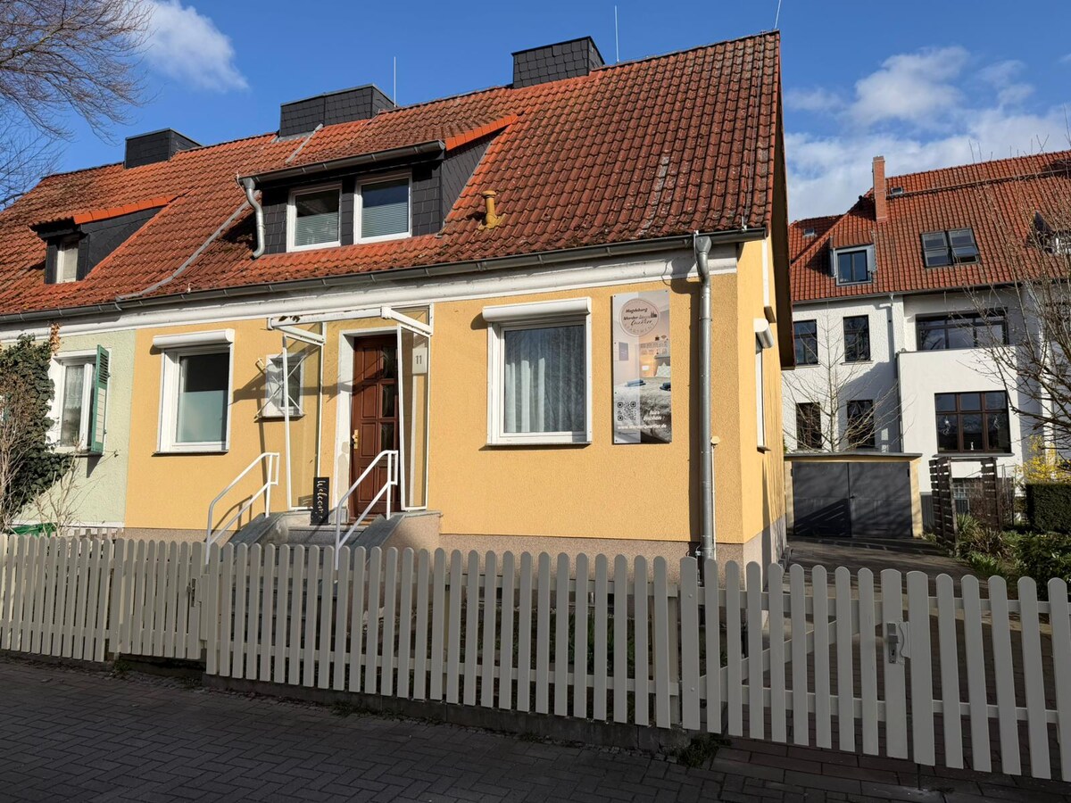 Ιδανικό μέρος σε ήσυχη τοποθεσία - Για έως 8 άτομα! Η τιμή είναι για 2 υπνοδωμάτια. Το 3ο υπνοδωμάτιο μπορεί να χρησιμοποιηθεί μόνο από μια κράτηση 5 επισκεπτών. Κάθε επιπλέον επισκέπτης κοστίζει 25 € ανά διανυκτέρευση. Ψάχνετε για ένα άνετο και μοντέρνο κατάλυμα για τη διαμονή σας στο Μαγδεμβούργο; Αυτό το πρόσφατα ανακαινισμένο επιπλωμένο αρχοντικό σας προσφέρει όλα όσα χρειάζεστε για να νιώσετε σαν στο σπίτι σας. Περιλαμβάνονται σεντόνια και πετσέτες.