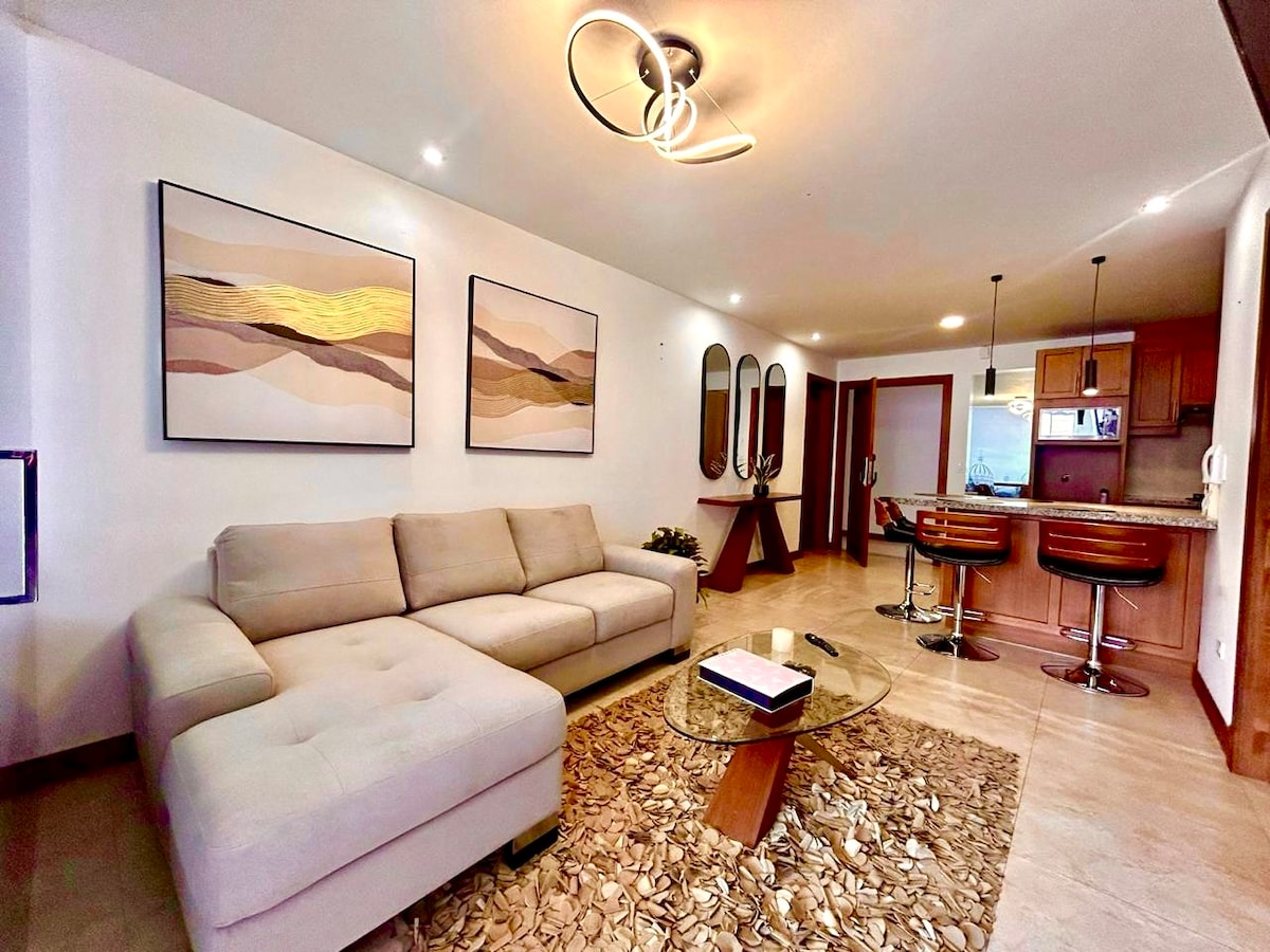 Κομψή σοφίτα με ποιοτικά φινιρίσματα, ιδανική για στελέχη/ταξιδιώτες που αναζητούν μέγιστη ασφάλεια και άνεση. Κοντά στο Quinta Lucrecia, Mall del Río, Supermaxi. Περιλαμβάνει: -Καθημερινό γκουρμέ πρωινό (φρέσκος χυμός, 2 αυγά, τοστ). Σερβίρεται στην πόρτα σας (8-10 π.μ.). Δεν είναι διαθέσιμο τις Κυριακές - WiFi 6. -Ασφαλές γκαράζ. -Έξυπνες κλειδαριές, έξυπνη τηλεόραση 65", ηλεκτρικό τζάκι. -Προσφορά: πετσέτες, σαμπουάν, αφρόλουτρο. -Εξαιρετική τοποθεσία, άνεση και ασφάλεια εγγυημένα! (Αποφύγετε τη χρήση πετσετών για την αφαίρεση του μακιγιάζ).