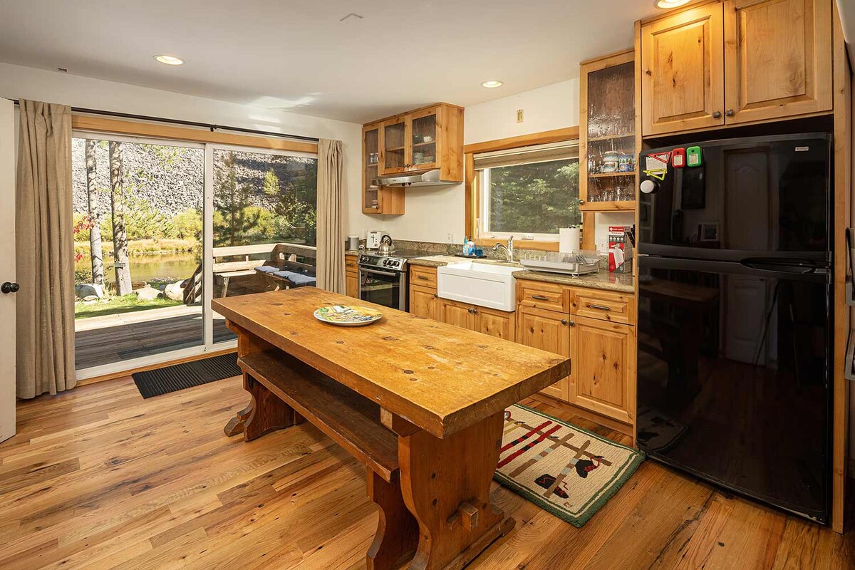 Downtown Truckee, On The River, with a generator! Beautiful, comfortable, fully remodeled one bedroom apartment tastefully decorated. Small weekday office upstairs. 80' of river frontage, large patios, stone stairways to river, on site parking. Walk downtown yet totally private. Note: Due to a very serious allergy of a cleaner, we cannot accommodate animals including service animals. NO smoking, max of 2 guests. No children under 13. 3 bedroom house next door also available STR lic. #008814