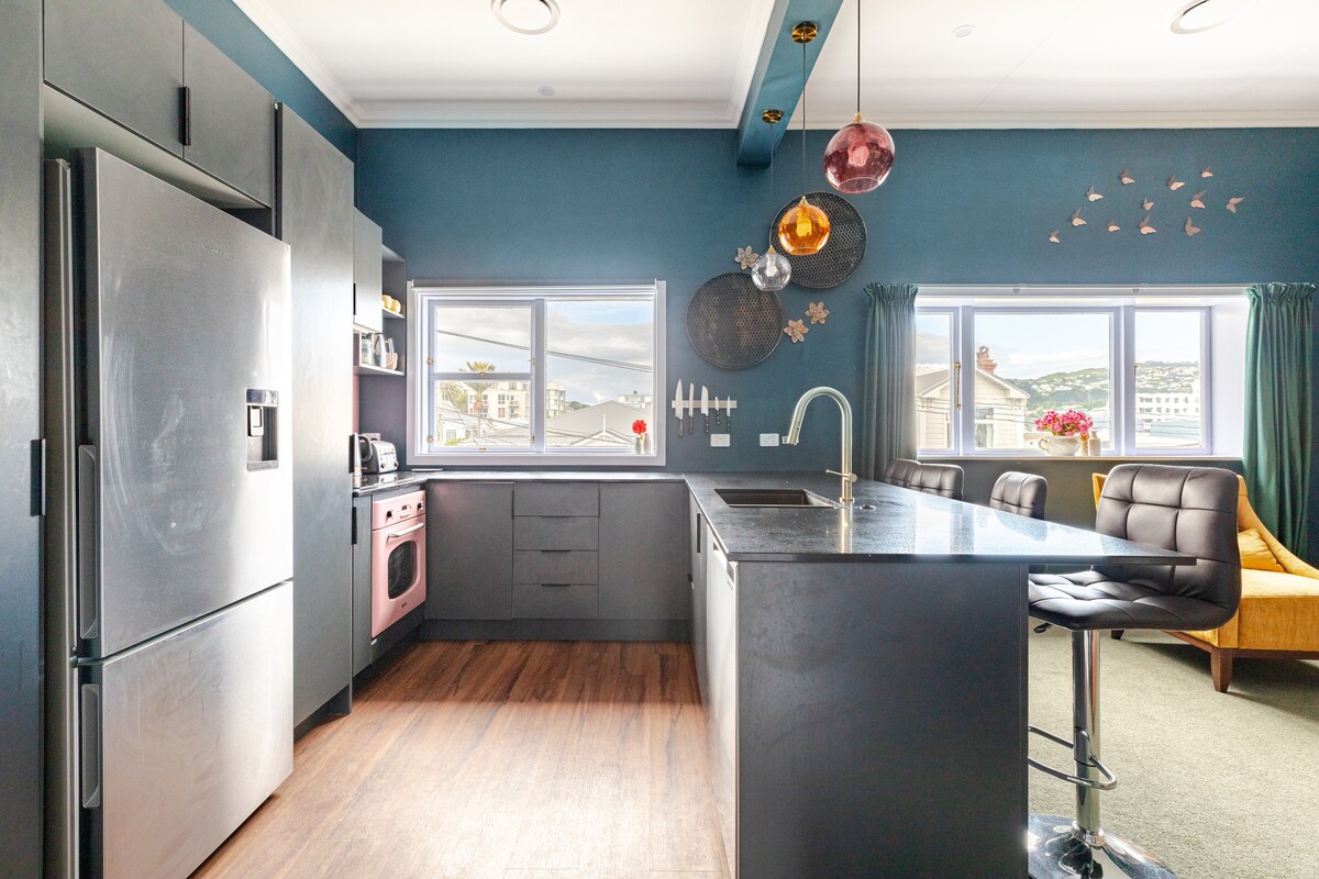 Χαλαρώστε στο ηλιόλουστο ολοκαίνουργιο διαμέρισμα στούντιο. Ξυπνήστε με πανοραμική θέα στο λιμάνι του Ουέλλινγκτον με οροσειρές στο βάθος. Παρακολουθήστε τα πλοία διασχίζουν το Στενό του Κουκ και πλεύστε μέσα από την είσοδο του λιμανιού. Απολαύστε εκατομμύρια φώτα της πόλης που αναβοσβήνουν τη νύχτα Φωλιασμένοι στην κορυφή του όρους Βικτώρια με εκπληκτικές διαδρομές πεζοπορίας και ορεινής ποδηλασίας στο σκαλοπάτι της πόρτας μας, είμαστε σε κοντινή απόσταση από την πόλη, το Courtenay pl, το Oriental Bay και έχουμε μια στάση λεωφορείου απέναντι.