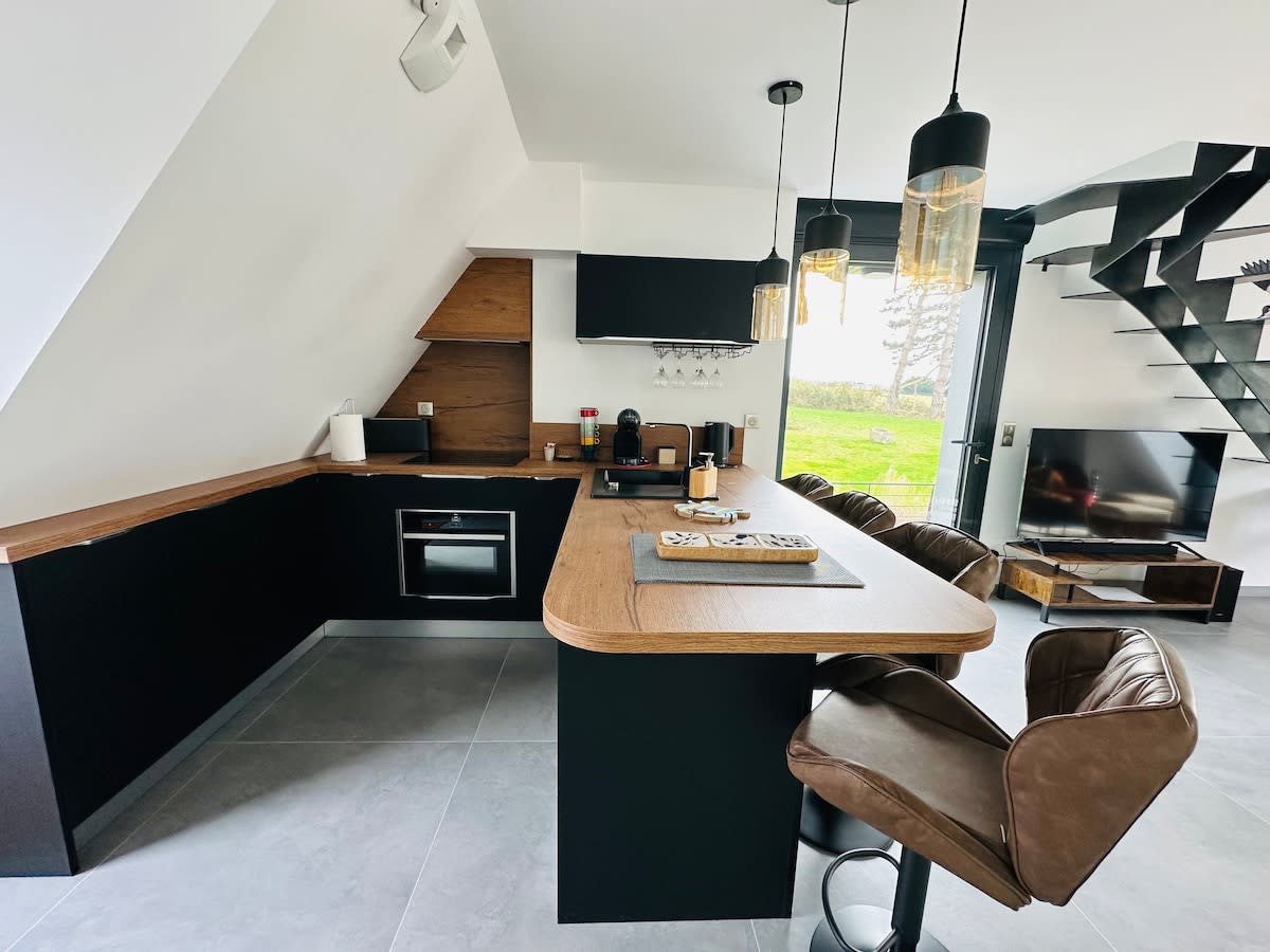 Welcome to the Cosy 4‑Star Apartment, one of five apartments in Villa Prat Bras, located facing Laïta Beach in Le Pouldu, South Brittany. Situated upstairs, this T2 (one‑bedroom flat) offers the peace of a large garden and direct access to the beach. From the beach in front of the house, enjoy a stunning view toward Groix Island. Experience the calm, the ever‑changing tides, and walks along the GR34 trail leading to Doëlan. Free parking and 200 Mbps Wi‑Fi.