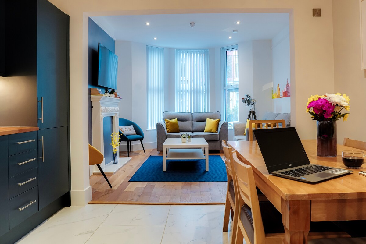 A stylish, luxurious, large period property that has been refurbished to the highest standards for comfort and safety. Primely located for the Port of Liverpool, Bramley Moore & Anfield Stadia, Aintree racecourse and 4 miles from Liverpool City Centre, why pay more for a cramped Hotel. Perfect for work, play, or short-term letting with space in abundance. Sit back, relax with your group whilst still having the benefit of large private rooms with all amenities. We've really the best of it all.