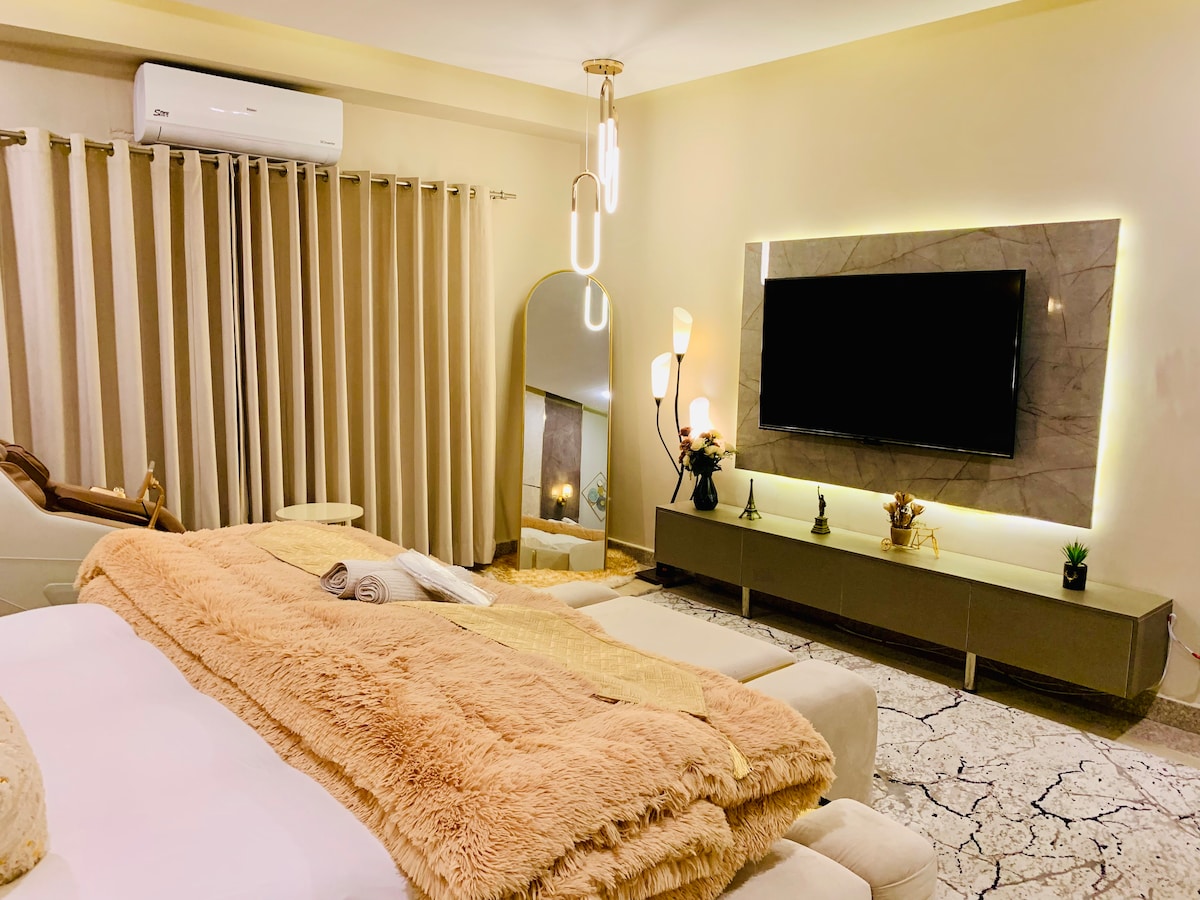Experience the height of comfort in this massive 1,500 sq.ft. Luxury "Chic" Executive Apartment, located in the prestigious Bahria Heights 5, Bahria Town Phase 7, Rawalpindi. Perfectly designed for families, couples, and business travellers seeking a posh, calm, and secure environment. Whether you are here for a short getaway or a long-term stay, this apartment blends hotel-style luxury with the warmth of a home. Ready for a luxurious stay in Rawalpindi? Book now to secure your dates!