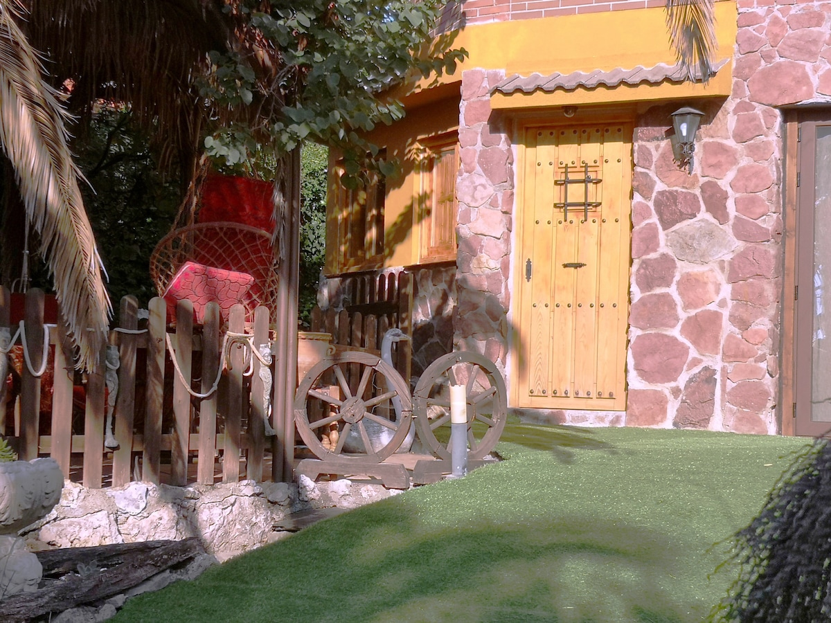 Γοητευτικό ορεινό σπίτι και πλήρως εξοπλισμένο. Βρίσκεται σε ένα μοναδικό φυσικό περιβάλλον: ένα ιδιωτικό κτήμα 65 εκταρίων γεμάτο βελανιδιές, με λίμνη και ερημητήριο, ιδανικό για βόλτα, πεζοπορία στα βουνά... Θα είστε στο κέντρο της Sierra de Guadarrama, που περιβάλλεται από βουνά και φύση. Το ιδανικό μέρος για ένα ρομαντικό Σαββατοκύριακο, με τζάκι και τζακούζι για δύο άτομα. Ιδανικό για να έρθετε με παιδιά. ΑΠΑΓΟΡΕΥΟΝΤΑΙ ΤΑ ΚΑΤΟΙΚ ΑΠΑΓΟΡΕΥΕΤΑΙ ΤΟ ΚΑΠΝΙΣΜΑ.