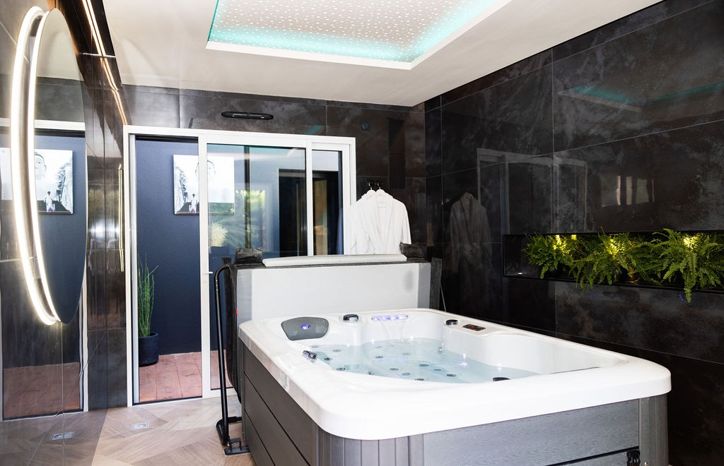 The establishment is peaceful, adults-only, and smoke-free. The "Oscar" Studio, with its bold and timeless design, patio, and private spa, combines modernity and sophistication. 📍In the heart of the village, 8 minutes from Angers, close to the Mayenne River, Terra Bonatica, the Vélo Francette, and hiking trails. Treat yourself to a romantic escape in complete elegance. Public parking and electric vehicle charger 5 meters from the establishment.