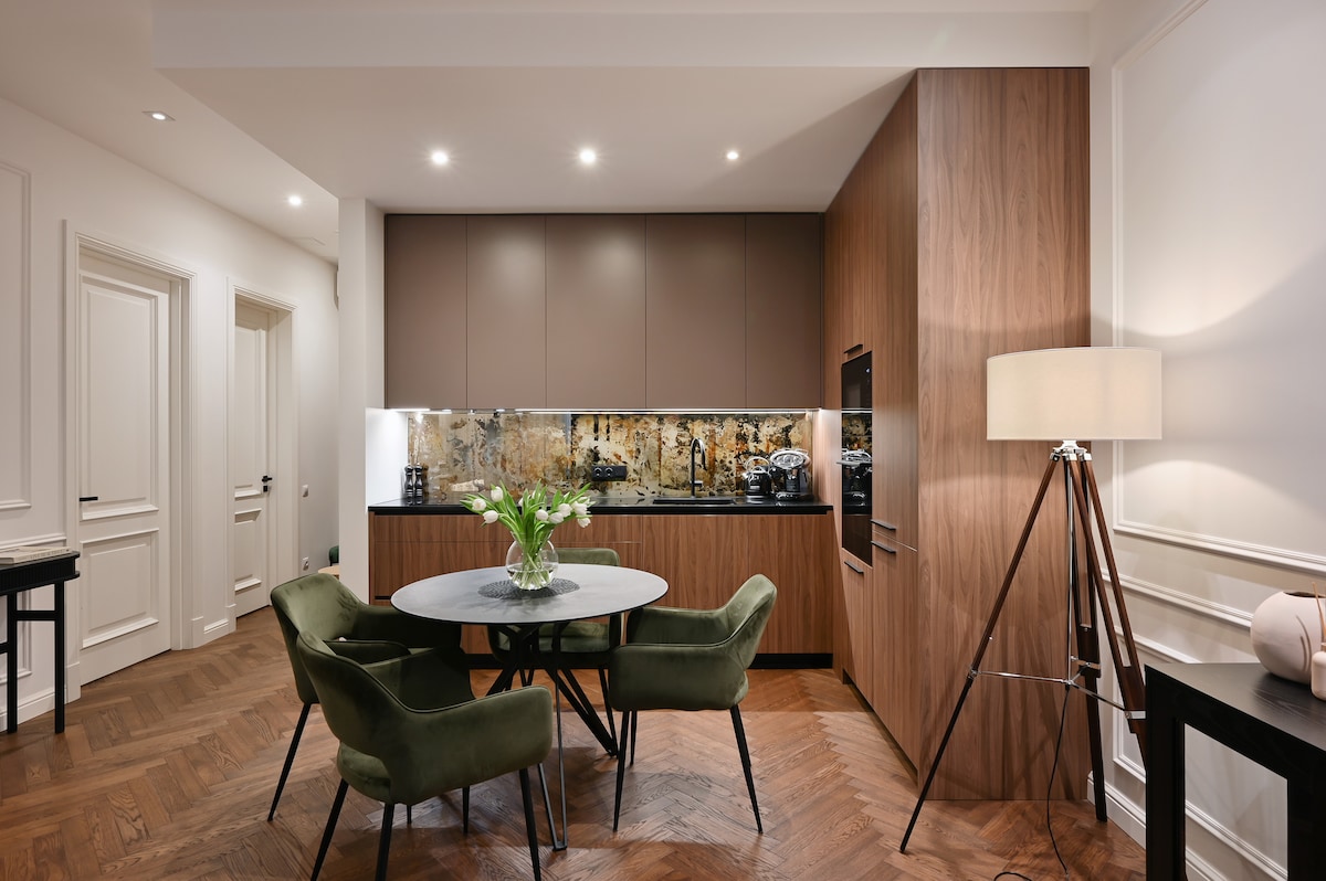 Απολαύστε μια άνετη διαμονή σε αυτό το προσεκτικά σχεδιασμένο διαμέρισμα ενός υπνοδωματίου, που βρίσκεται σε ένα ιστορικό μοντερνιστικό κτίριο της δεκαετίας του 1930. Προσεκτικά ανακαινισμένος για να διατηρήσει την αρχική του γοητεία, ο χώρος είναι φωτεινός, φιλόξενος και εμπλουτισμένος με έργα τέχνης από τους αγαπημένους μου Λετονούς καλλιτέχνες. Είτε επισκέπτεστε τη Ρίγα για επαγγελματικούς λόγους είτε για αναψυχή, αυτό το διαμέρισμα προσφέρει μια ζεστή και καλά εξοπλισμένη βάση - ιδανική για μοναχικούς ταξιδιώτες, ζευγάρια ή γονείς με μωρό.