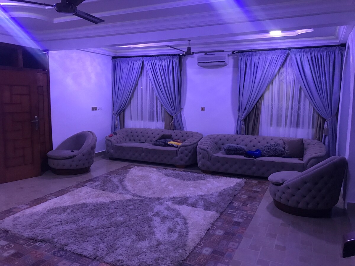 Φέρτε όλη την οικογένεια σε αυτό το υπέροχο μέρος κοντά στο The Anaji Choice Mart στο Takoradi με 5 κύρια υπνοδωμάτια, δωρεάν χώρο στάθμευσης και γρήγορο wifi για διασκέδαση.