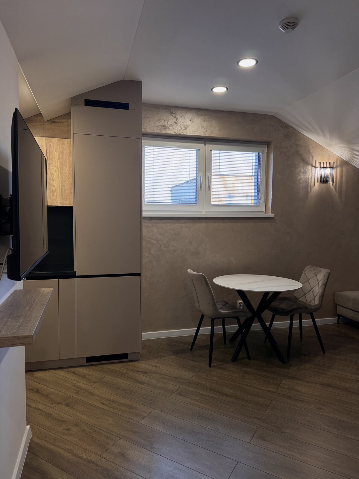 Designový apartmán v blízkosti letiště s velkou sluneční terasou. Nabízí klid, styl a výbornou dostupnost do centra Bratislavy. Součástí je podzměné parkovací místo. Okolí má výbornou občanskou vybavenost (AVION, IKEA, STARBUCKS, MC DONALDS...). Apartnám je plně vybaven - pračkou, sušičkou, myčkou na nádobí, domácím kinem se všemi streamovacími službami a kompletně vybavenou kuchyní s kávovarem. Večer si můžete vychutnat sklenku vína na velké terase s nádherným výhledem.