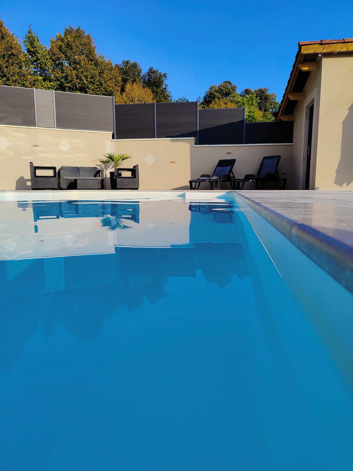 Βρίσκεται στους λόφους του γοητευτικού χωριού Birac-sur-trec. Η ηρεμία, η γαλήνη και η εκπληκτική θέα της υπαίθρου σας περιμένουν. Μπορείτε να χαλαρώσετε στη βεράντα σας δίπλα στο δάσος, κάτω από τα πεύκα, δίπλα στην πισίνα ή να παίξετε με τα παιδιά στον κήπο. Οι υπαίθριες δραστηριότητες είναι επίσης στο ραντεβού, βόλτες στους αμπελώνες, στις όχθες του Garonne, επισκέψεις (εξοχικά σπίτια/κάστρα, φάρμες, γκουρμέ αγορές...) Το κατάλυμα έχει χαρακτηριστεί ως επιπλωμένο τουριστικό κατάλυμα 4*