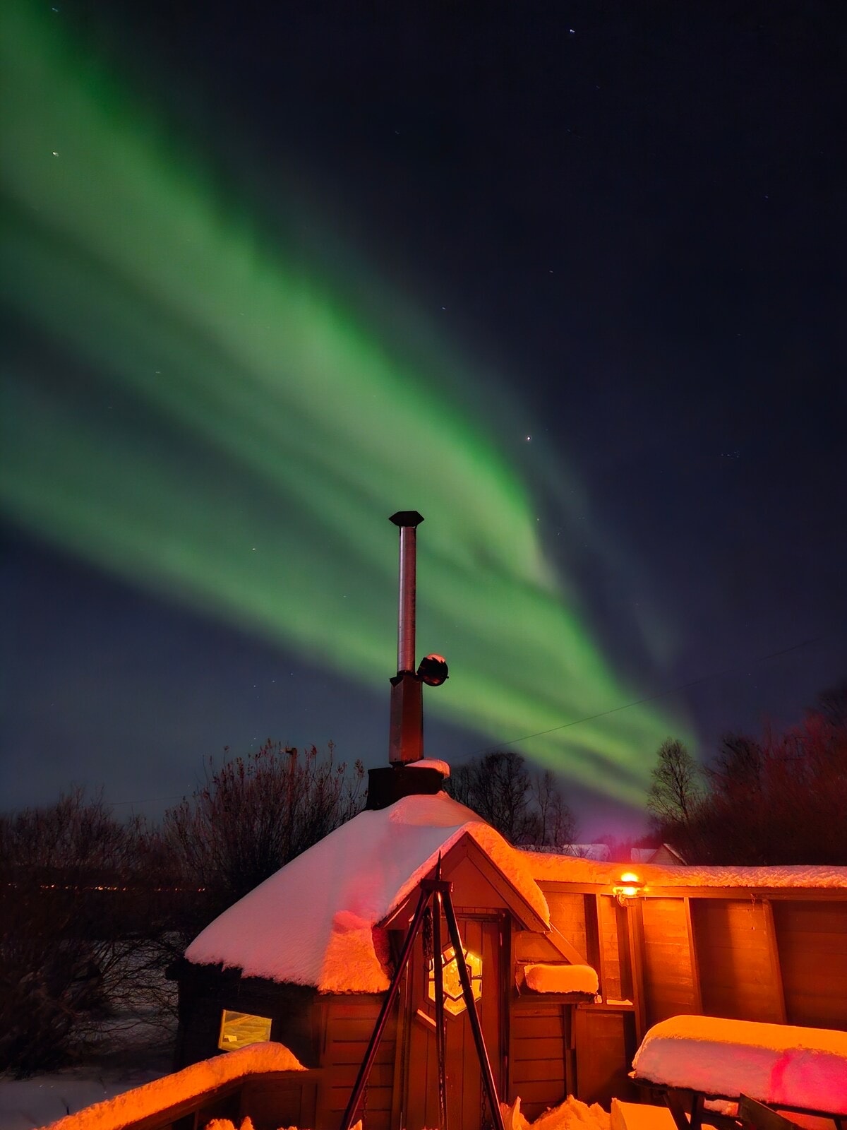 Εδώ μπορείτε πραγματικά να απολαύσετε τη ζωή στην εξοχή σε ένα κομψό τροχόσπιτο. Η καλύβα μπάρμπεκιου είναι επίσης έτοιμη για χρήση, αν το επιθυμείτε. Εδώ μπορείτε να κάνετε ένα βήμα έξω από το τροχόσπιτο και να δείτε τα πανέμορφα βόρεια φώτα όταν το επιτρέπει ο καιρός και να καθίσετε έξω δίπλα στη φωτιά κάτω από το Βόρειο Σέλας να χορέψετε στον ουρανό. Το τροχόσπιτο είναι εξοπλισμένο με κεντρική θέρμανση και ενδοδαπέδια θέρμανση, η οποία εξασφαλίζει ότι παραμένει ζεστό και άνετο ακόμα και το χειμώνα. Έχουμε μια γάτα και έναν σκύλο στη φάρμα που λατρεύουν τις αγκαλιές