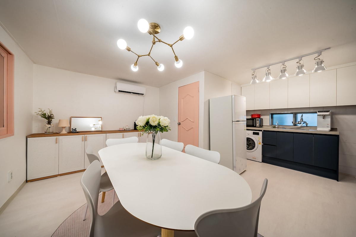 ★Ακολουθήστε τον κανόνα της κυβέρνησης που περιορίζει τον αριθμό των ατόμων που συγκεντρώνονται μέχρι να φύγει η πανδημία. ★CORE of Hongik Univ(Hongdae) Area★ ★Σύντομος & άμεσος σιδηρόδρομος αεροδρομίου★ ★Μόλις 1 λεπτό από την έξοδο#5 του σταθμού Hongdae Univ. clean street Beside Park ★Ένα μεγάλο ευρύχωρο δωμάτιο για 6~7 άτομα (έως 10 άτομα) * Ταράτσα 4F +5F ★Κήπος & Μπάρμπεκιου★ ★Wifi Κλινοσκεπάσματα ★σε στιλ ξενοδοχείου ★Η επικοινωνία είναι δυνατή σε όλα τα Αγγλικά, τα Κινεζικά και τα Κορεατικά ★Μικρές αποσκευές σε ντουλάπι 3F από ΤΙΣ 12 Μ.Μ. Άφιξη ★ΣΤΙΣ 3 Μ.Μ.. Αναχώρηση ΣΤΙΣ 11 Π.Μ.