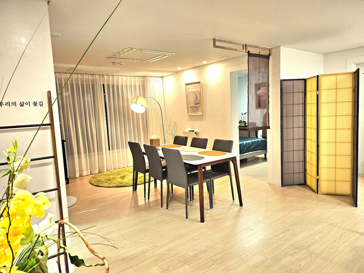 A newly built Residence within 3 minutes of 2 subway stations *Reception & Luggage Storage & Guest Lounge: B1F (English & Chinese-speaking staff available, breakfast service (paid)) *non-smoking property. fine: 150,000 won. *A Coffee machine & welcome coffee capsule, bidet ,drinking water purifier *Everything you need, just like home. *2 guests will use one bed. If you prefer separate beds, please request in advance. (paid) *For 3 or more people, a sofa bed will be set up as a bed.