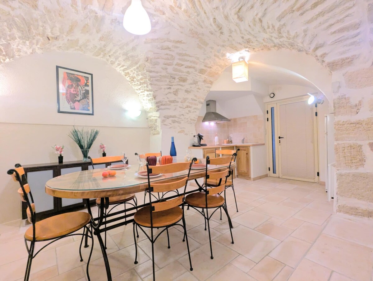 Γοητευτική σουίτα ανακαινισμένη με γούστο, σε ένα παλιό βοηθητικό κτίριο του Palais des Papes, σε ένα ιστορικό κτίριο γεμάτο χαρακτήρα. Ένα ζεστό κουκούλι στην καρδιά της Αβινιόν, ανάμεσα στο Maison Jean Vilar και το Δημαρχείο (🚸 πεζόδρομος). Check-in χωρίς παρουσία οικοδεσπότη – Check-in 5 μ.μ. / Αναχώρηση 10 π.μ. 1ος όροφος, κτίριο με 5 διαμερίσματα (⚠️ χωρίς ανελκυστήρα).