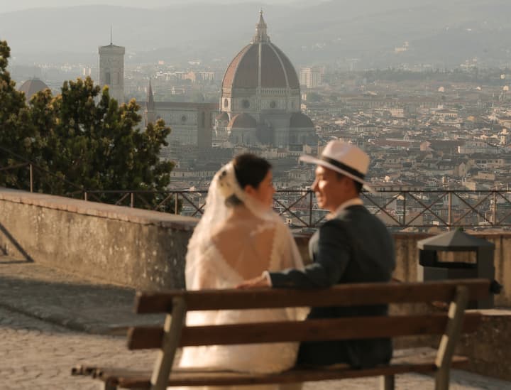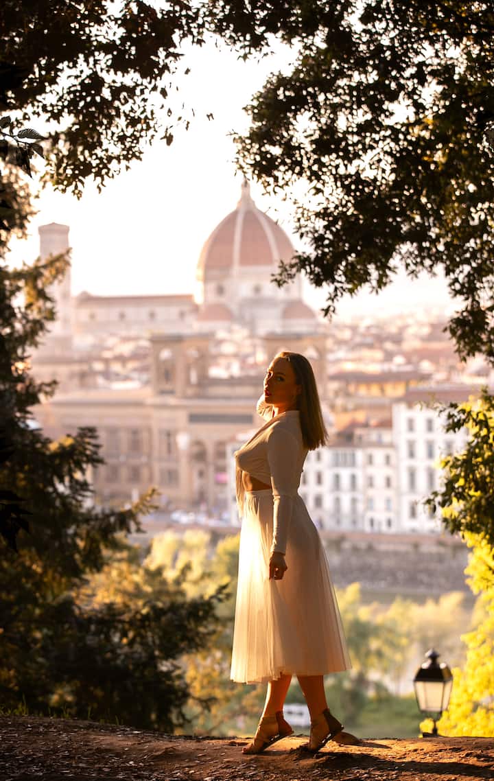 Ζήστε τη Φλωρεντία ενώ ο υπόλοιπος κόσμος κοιμάται ακόμα. Θα συναντηθούμε με το πρώτο φως της αυγής για να απαθανατίσουμε την πόλη να λούζεται σε μια αιθέρια λάμψη και, το πιο σημαντικό, χωρίς τα πλήθη των τουριστών. Αυτή είναι η ιδανική στιγμή για απλά, μινιμαλιστικά και εξαιρετικά ρομαντικά πορτρέτα, με τον Άρνο και τον Καθεδρικό Ναό να υψώνονται πίσω σας σε μια σχεδόν μαγική σιωπή. (Να με ρωτάτε πάντα για τη διαθεσιμότητα.)