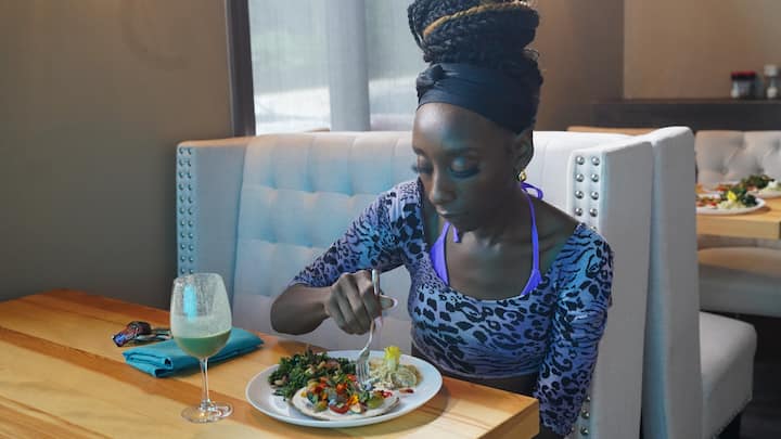 Ένα μενού με χυμό, smoothie, ορεκτικό, σαλάτα, κυρίως πιάτο και επιδόρπιο, προσαρμοσμένο στις προτιμήσεις σας. Όλα τα προϊόντα είναι φυτικής προέλευσης.