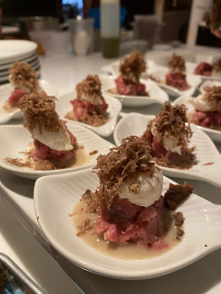 – Ταρτάρ βοδινού κρέατος με ντομάτα, φρέσκια ρίγανη και εξαιρετικό παρθένο ελαιόλαδο από την Καμπανία