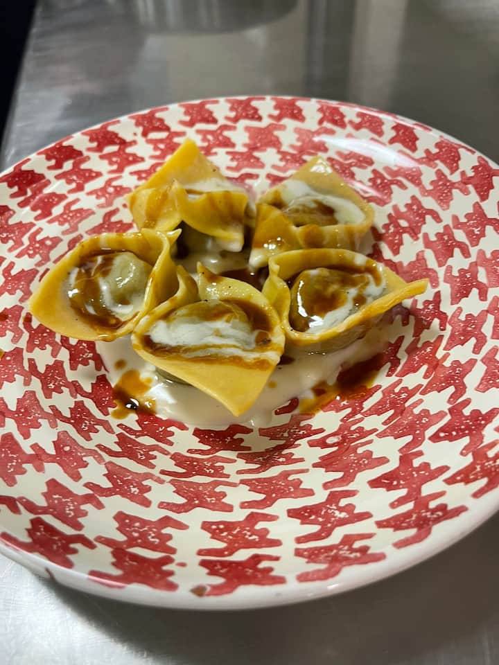 – Χειροποίητα τορτελίνι με τυρί πεκορίνο Τοσκάνης και αχλάδια, βούτυρο φουντουκιού και καλοκαιρινή τρούφα