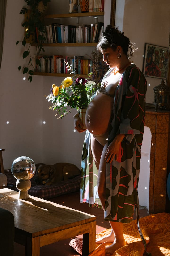 Φωτογράφιση στο σπίτι για εγκύους και οικογένειες, με εφέ φυσικού φωτισμού και τον χώρο διαβίωσής σας, συνοδευόμενη από αξεσουάρ της επιλογής σας (φρέσκα λουλούδια, πολύχρωμα υφάσματα και πολλά άλλα).