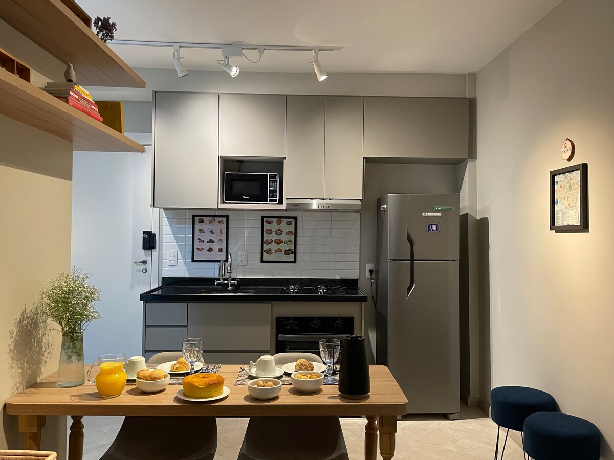 Μεγάλο, κλιματιζόμενο διαμέρισμα με πλήρως εξοπλισμένη κουζίνα, στο Alto Centro de Belo Horizonte! Γνωρίστε το Guaja 745! Το διαμέρισμα διαθέτει: - Κλιματισμό. - Airfryer - Φούρνος μικροκυμάτων. - Μικρό ψυγείο. - Καφετιέρα - Παιχνίδια δείπνου και ποτήρια για δύο άτομα. - Τραπέζι με 2 καρέκλες. - Γραφείο γραφείου. - Smart TV 42'. - Wi-Fi. - Πιστολάκι για τα μαλλιά . Πρίζες 220v Πλυντήριο και στεγνωτήριο διαθέσιμα για χρήση με χρέωση. Προνομιακή τοποθεσία, κεντρική, κοντά στο Savassi.