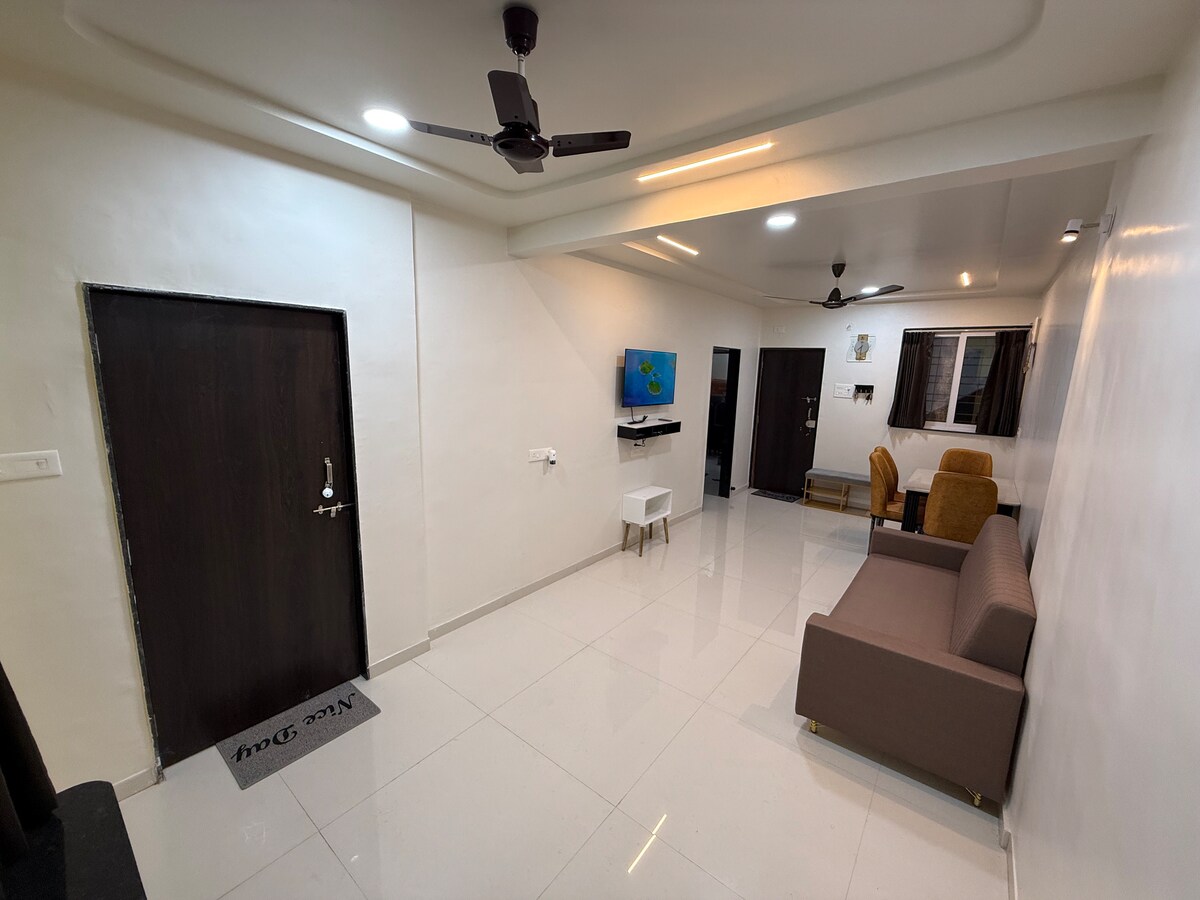 Όμορφο διαμέρισμα με 2 υπνοδωμάτια, 2 μπάνια, σαλόνι, κουζίνα και καλό φως ημέρας. 1 χλμ. από τον αυτοκινητόδρομο Mumbai Agra προς τον δρόμο Pathardi phata. 29 χλμ./45 λεπτά από τον ναό Trimbakeshwar, 10 χλμ. από τον σταθμό Nashik Road. Διατίθεται χώρος στάθμευσης για τετράτροχα οχήματα. Αυστηρά για παντρεμένα ζευγάρια ή οικογένειες, με ταυτότητες με φωτογραφία που να ταιριάζουν. Επιτρέπονται τα κατοικίδια κατόπιν συζήτησης, δεν επιτρέπονται οι επισκέπτες μετά τις ώρες λειτουργίας. WiFi 50 Mbps, έξυπνη τηλεόραση LED 50 ιντσών, ψυγείο, κλιματισμός και στα δύο υπνοδωμάτια, πλυντήριο ρούχων, φίλτρο νερού PureIt και απαραίτητα είδη κουζίνας, κουζίνα υγραερίου.