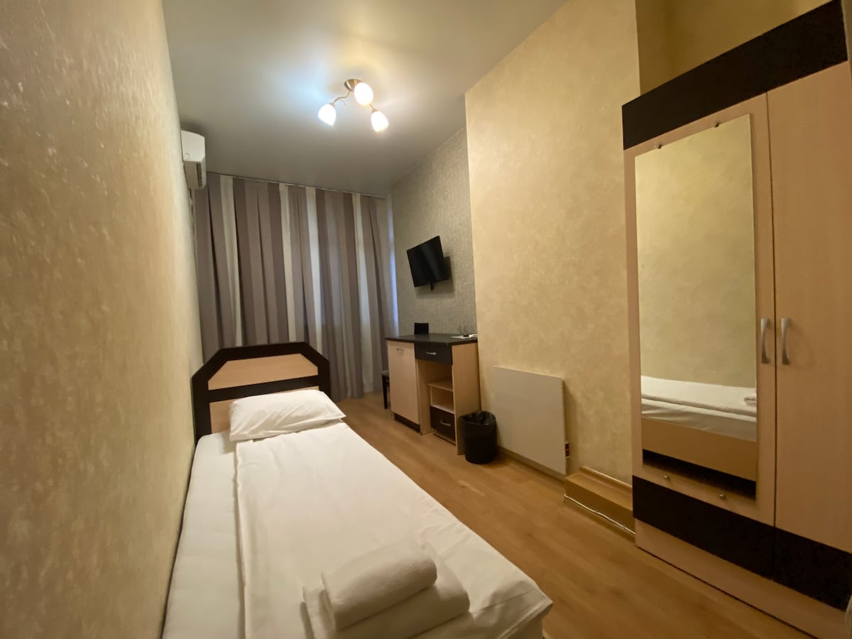 Δωμάτιο ξενοδοχείου με δύο μονά κρεβάτια, σιδηροδρομικός σταθμός