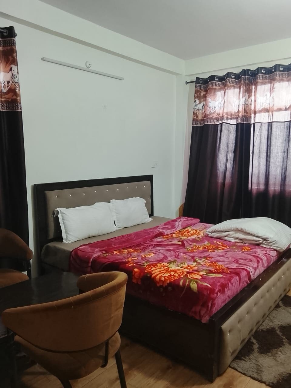 This is a very comfortable stay in mountain. Its a bunglow with 7 bed rooms with different arrangments. There is one duplex with 2 bed rooms with attached toilet bath to each room. Then there is a unit of a Suite room with 2 bed rooms, 1 toilet bath & a dinning room. Apart from this, there are 3 standard bed rooms and each bedroom has attached toilet bath So whole unit of the bunglow can accommodate 16 to 20 persons. Note: for heating we Charge Rs.300 additional per bedroom per day.