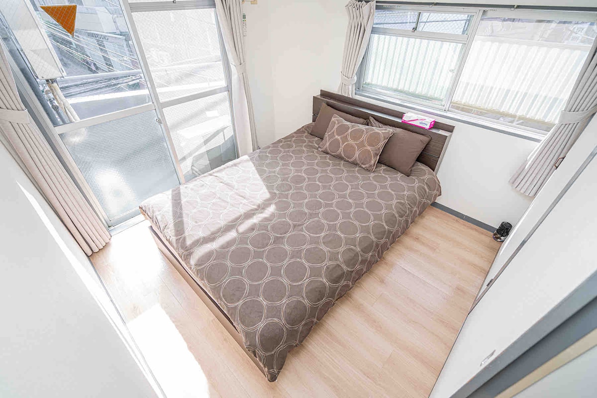 房源位置与周边环境: 房源位于新宿站生活圈内,但不在嘈杂、不宜居的歌舞伎町区域。步行至歌舞伎町约15分钟,可方便前往体验夜生活,但居住区域本身安静舒适。 步行约10多分钟可达新宿都厅展望台。 最近地铁出口步行约3–4分钟。 从JR山手线新宿站西口步行约8–10分钟即可到达。 从羽田机场、成田机场均有直达新宿的机场大巴。 高速大巴站步行至民宿约15分钟。 周边商业成熟,生活配套完善,餐厅、便利店、药妆店、超市等一应俱全,交通便利。 从车站步行至民宿途中会经过商业街,各类商铺与餐厅齐全;最后进入住宅小巷区域,闹中取静,夜晚相当安静,适合休息。 房间情况: 本房源于2025年年中完成重新装修,所有设备均为全新配置。 配有阳台,可在阳台吸烟(室内禁止吸烟)。 公寓楼无电梯,房间位于4楼,需要步行3段楼梯。 不适合携带沉重大型行李的客人,请提前考虑。