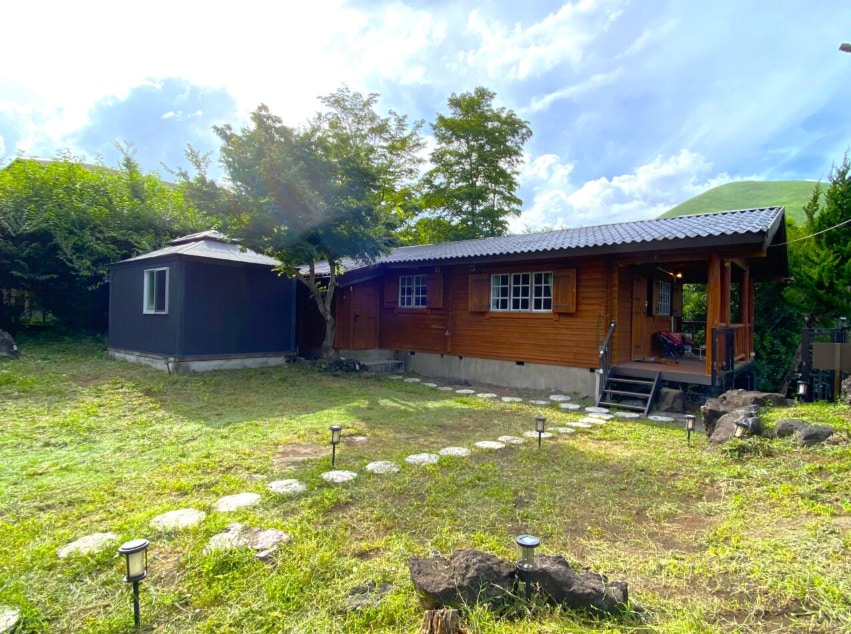 大室山を臨むジャグジー付きログハウス nikovilla WOODY棟