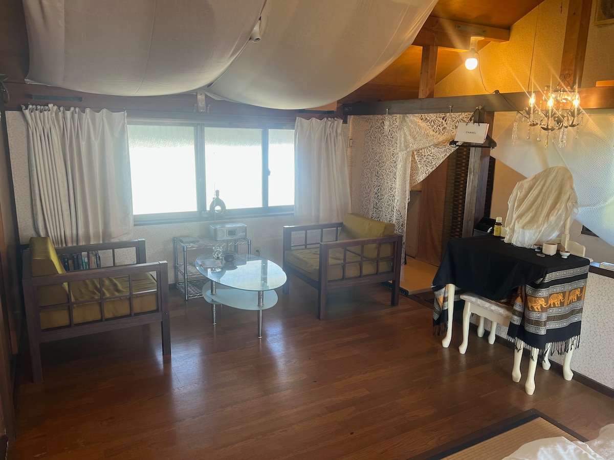 Φέτος είναι το 17ο έτος του ενοικιαζόμενου καταλύματος για διακοπές στο Palm Island < Μπορούμε να φιλοξενήσουμε περισσότερα από 17 άτομα σε ορισμένες ημέρες, γι' αυτό επικοινωνήστε μαζί μας > Περιορισμένη σε μία ομάδα την ημέρα, η ακτή Izu Usami, με την ευρεία, ρηχή αμμώδη παραλία της, είναι ακριβώς μπροστά σας.Μπορείτε επίσης να ανάψετε πυροτεχνήματα στην ακτή.Η θερμή πηγή ρέει από την πηγή και υπάρχει μπάρμπεκιου στον 2ο όροφο του εστιατορίου (χώρος μπάρμπεκιου και αίθουσα μόνο). Σε 12 λεπτά με τα πόδια από τον σταθμό, ένα σούπερ μάρκετ, ένα παντοπωλείο και ένα φαρμακείο βρίσκονται σε κοντινή απόσταση.Λίγα λεπτά με το αυτοκίνητο για το Mega Donki.Μπορούν να σταθμευτούν έως 5 κανονικά αυτοκίνητα μπροστά από το πανδοχείο Εκτός από το σαλόνι με 30 τατάμι που μπορεί να φιλοξενήσει μεγάλο αριθμό ατόμων, υπάρχουν επίσης διαθέσιμα δωμάτια ιαπωνικού στιλ, ώστε να μπορείτε να έχετε έναν ιδιωτικό χώρο (ο αριθμός των δωματίων εξαρτάται από τον αριθμό των ατόμων).Ιδανικό για ταξίδια με την οικογένεια, τους φίλους, τα κατοικίδια (3.500 γιεν ανά κατοικίδιο ανά διανυκτέρευση), τα πάρτι γενεθλίων, τα κλαμπ και τα σεμινάρια Απέχει λιγότερο από 2 ώρες από τη μητροπολιτική περιοχή, καθιστώντας εύκολη την πρόσβαση από το Κανσάι.Συνιστάται επίσης ως βάση για καταδύσεις, σέρφινγκ, γκολφ, ψάρεμα κ.λπ. * Η βασική τιμή είναι για 7 ενήλικες (2 παιδιά και 1 ενήλικα).Αν υπάρχουν περισσότεροι από 7 ενήλικες, 1 παιδί κοστίζει 4.000 γιεν ανά διανυκτέρευση και κάτω των 2 ετών είναι δωρεάν.Θα σας επιστρέψουμε χρήματα αφού κάνετε κράτηση * Σχέδιο μπάρμπεκιου με τοπική μπύρα @ διαθέσιμο εστιατόριο (απαιτείται κράτηση)