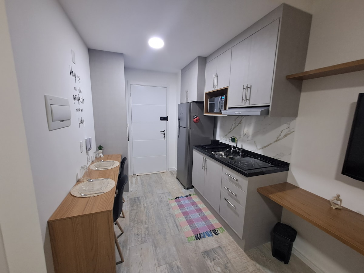 Ένα μοντέρνο, άνετο και ενεργητικό καταφύγιο στην καρδιά του Τατουάπε, λίγα μόνο βήματα από το μετρό και τα εμπορικά κέντρα Boulevard και Tatuapé. Το στούντιο διαθέτει καλοσχεδιασμένο 24τ.μ. (24 τετραγωνικά μέτρα) με ένα πολύ άνετο διπλό κρεβάτι, κουρτίνες συσκότισης, κλιματισμό, έξυπνη τηλεόραση 55 ιντσών, γρήγορο Wi-Fi, πλήρως εξοπλισμένη κουζίνα (ψυγείο, εστίες μαγειρέματος, φούρνο μικροκυμάτων, σκεύη και καφέ για να ξεκινήσετε σωστά τη μέρα σας), καθώς και κλινοσκεπάσματα, πετσέτες και βασικά είδη περιποίησης.