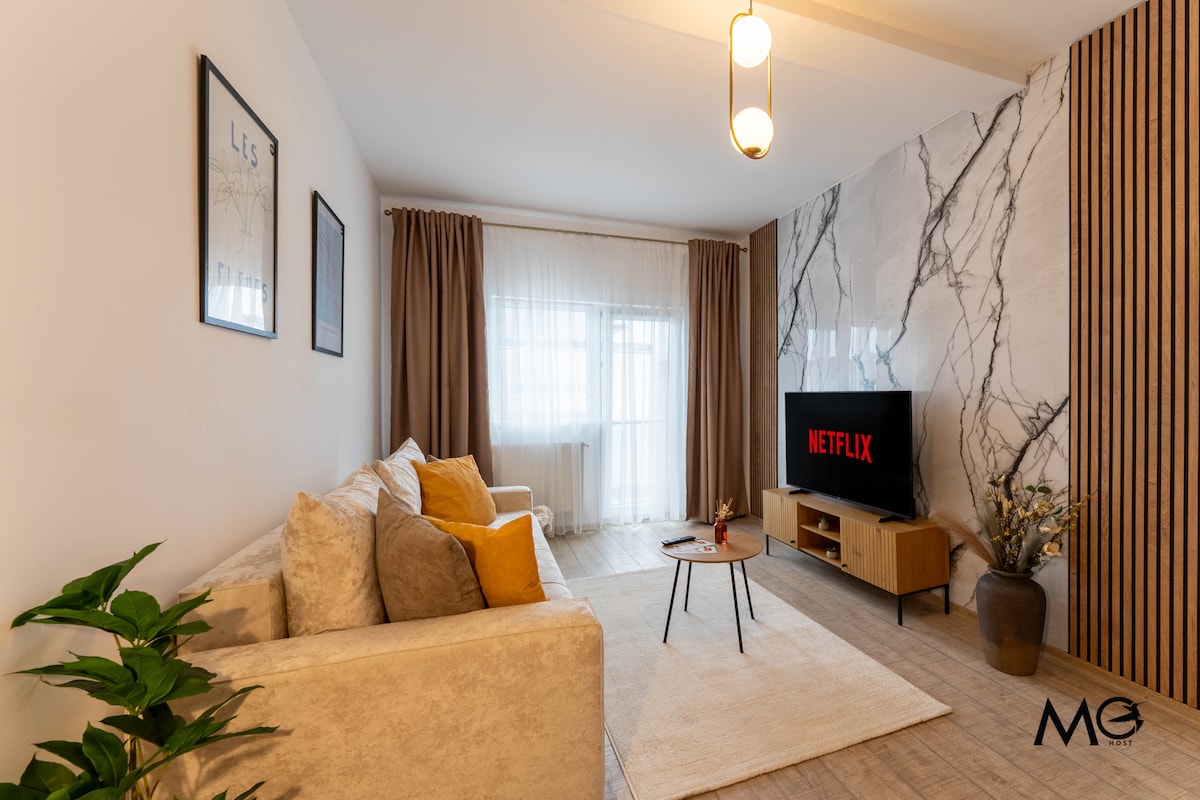 Το διαμέρισμά μας απέχει λίγα βήματα από την Piata Mare (Μεγάλη πλατεία) στο Σιμπίου. Βρίσκεται σε ένα ιστορικό κτίριο 200 ετών και διαθέτει ένα άνετο υπνοδωμάτιο, σαλόνι με έξυπνη τηλεόραση (Netflix), γρήγορο Wi-Fi και πλήρως εξοπλισμένη κουζίνα με καφετιέρα, φούρνο και πλυντήριο ρούχων. Η κεντρική θέρμανση κρατάει τα πράγματα ζεστά το χειμώνα και ο κλιματισμός είναι διαθέσιμος το καλοκαίρι. Μια μικρή ιδιωτική βεράντα προσθέτει επιπλέον γοητεία - ιδανική για χαλάρωση μετά από μια ημέρα εξερεύνησης της πόλης.