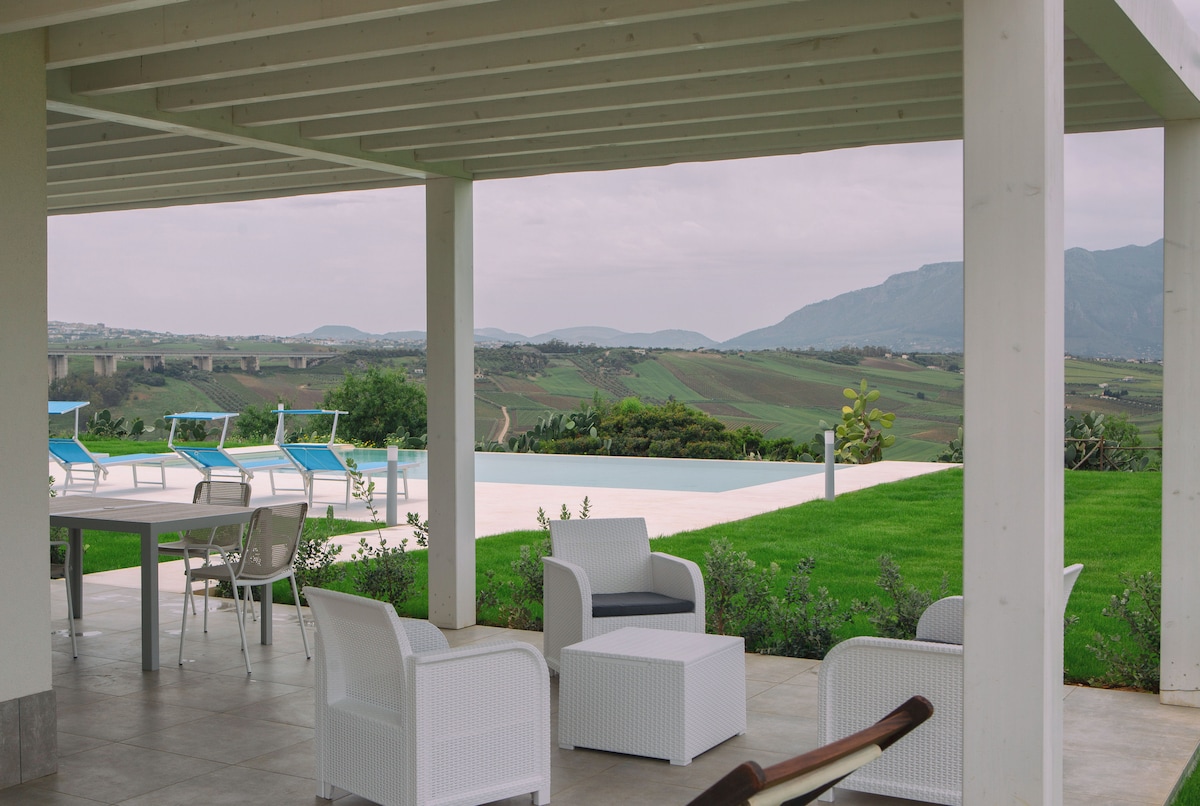 Η Villa Malù βρίσκεται σε έναν μικρό λόφο με θέα στη θάλασσα και προσφέρει στους επισκέπτες μια εξαιρετική εμπειρία. Η βίλα διαθέτει μια όμορφη πισίνα υπερχείλισης με θέα στον κόλπο του Castellammare del Golfo, που περιβάλλεται από ένα περιποιημένο γκαζόν γεμάτο βλάστηση που βυθίζει τους επισκέπτες σε μια εκλεπτυσμένη και χαλαρωτική ατμόσφαιρα. Η αμμώδης παραλία απέχει μόλις 200 μέτρα, εύκολα προσβάσιμη με τα πόδια, ενώ οι πόλεις Scopello και San Vito lo Capo βρίσκονται μόλις λίγα χιλιόμετρα μακριά.