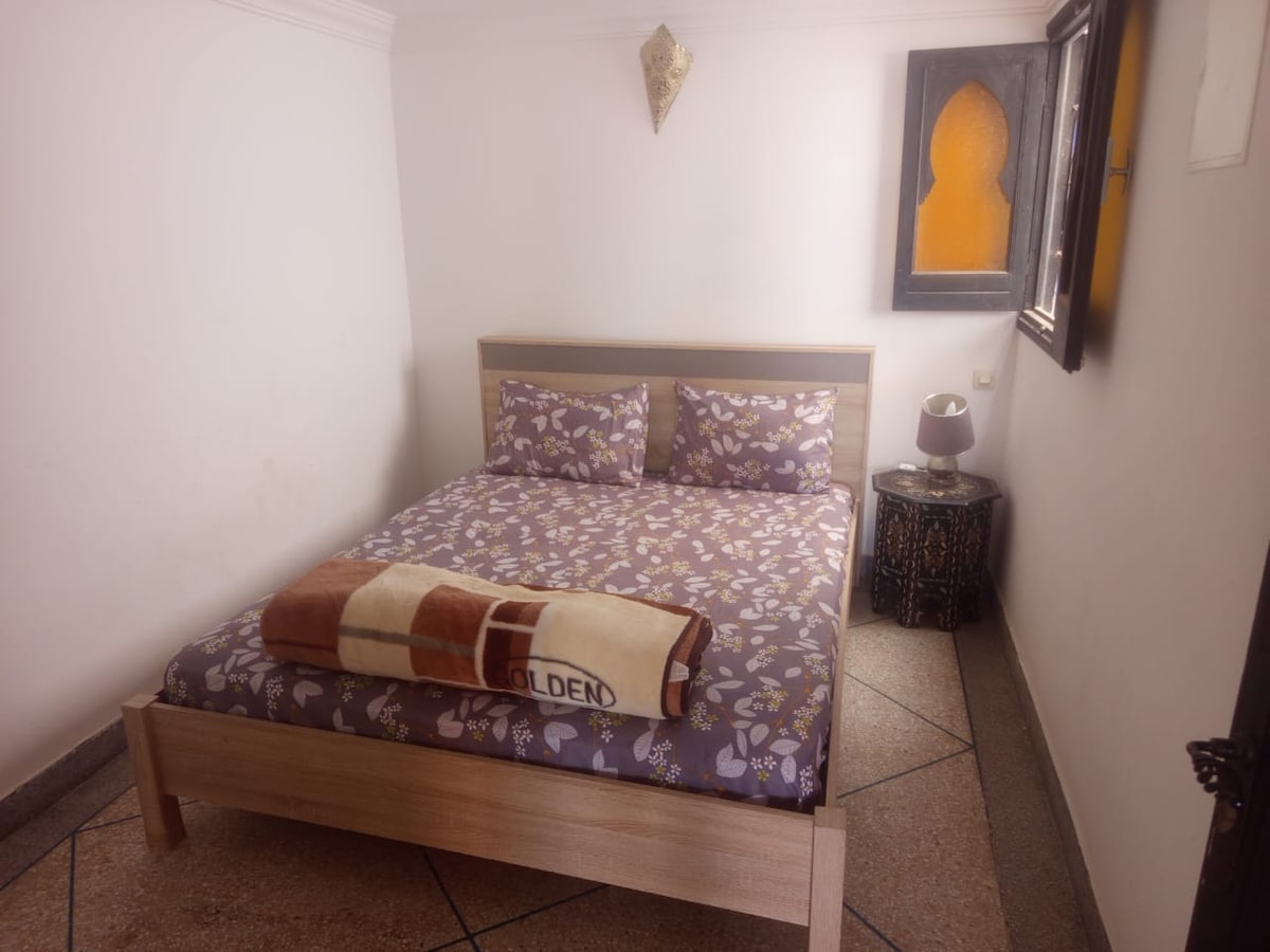 Αυτό το όμορφο Ριάντ, ιδανικό για 4 άτομα βρίσκεται σε μια ήσυχη περιοχή, 5 λεπτά από την παραλία και 10 λεπτά από το κέντρο της πόλης. Περιλαμβάνει ένα υπνοδωμάτιο με ένα διπλό κρεβάτι και ένα υπνοδωμάτιο με 2 μονά κρεβάτια. Υπάρχει ένα μεγάλο μαροκινό σαλόνι, εξοπλισμένη κουζίνα, μπάνιο, ανθισμένη εσωτερική αυλή καθώς και μια άνετη βεράντα. Πράγματα που μπορείτε να κάνετε στην περιοχή: παραλία, σέρφινγκ, σουκ, βόλτες στο βουνό, ανακάλυψη κοντινών χωριών, επίσκεψη σε μια όαση στην έρημο κ.λπ.