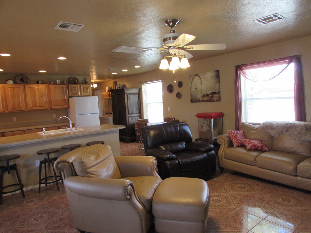 Καλώς ήρθατε στο γαλήνιο και γραφικό καταφύγιό μας στην έρημο του Νέου Μεξικού: ένα άνετο, καλά εξοπλισμένο σπίτι με τρία υπνοδωμάτια, ένα ευρύχωρο, ιδιωτικό εξωτερικό αίθριο, μια μεγάλη μπανιέρα με θερμές πηγές και ένα μαγικό σολάριουμ - όλα με εκπληκτική θέα στην ησυχία της φύσης. Σας προσκαλούμε να έρθετε να απολαύσετε τα θεραπευτικά νερά, να αποσυνδεθείτε από τα καθημερινά σας άγχη και να απολαύσετε την ξεκούραση και την αναπλήρωση.