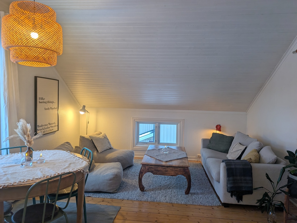 Το σπίτι βρίσκεται στο Bratsberg στο Skien, κοντά στην περιοχή πεζοπορίας Kapitelberget. Απέχει 10 λεπτά με τα πόδια από το Brekkeparken και 20 λεπτά με τα πόδια από το κέντρο της πόλης. Υπάρχουν δύο διπλά κρεβάτια και δύο μονά κρεβάτια, κατανεμημένα σε τρία υπνοδωμάτια. Υπάρχουν δύο επιπλέον στρώματα που μπορούν επίσης να χρησιμοποιηθούν αν χρειαστεί. Σημείωση: Οι φωτογραφίες στην αγγελία είναι τραβηγμένες στο πλαίσιο της διακόσμησης του καταλύματος. Το σπίτι είναι πλέον διαφορετικό, αλλά λιτό και όμορφα επιπλωμένο. Οι φωτογραφίες των υπνοδωματίων θα είναι διαθέσιμες σύντομα.