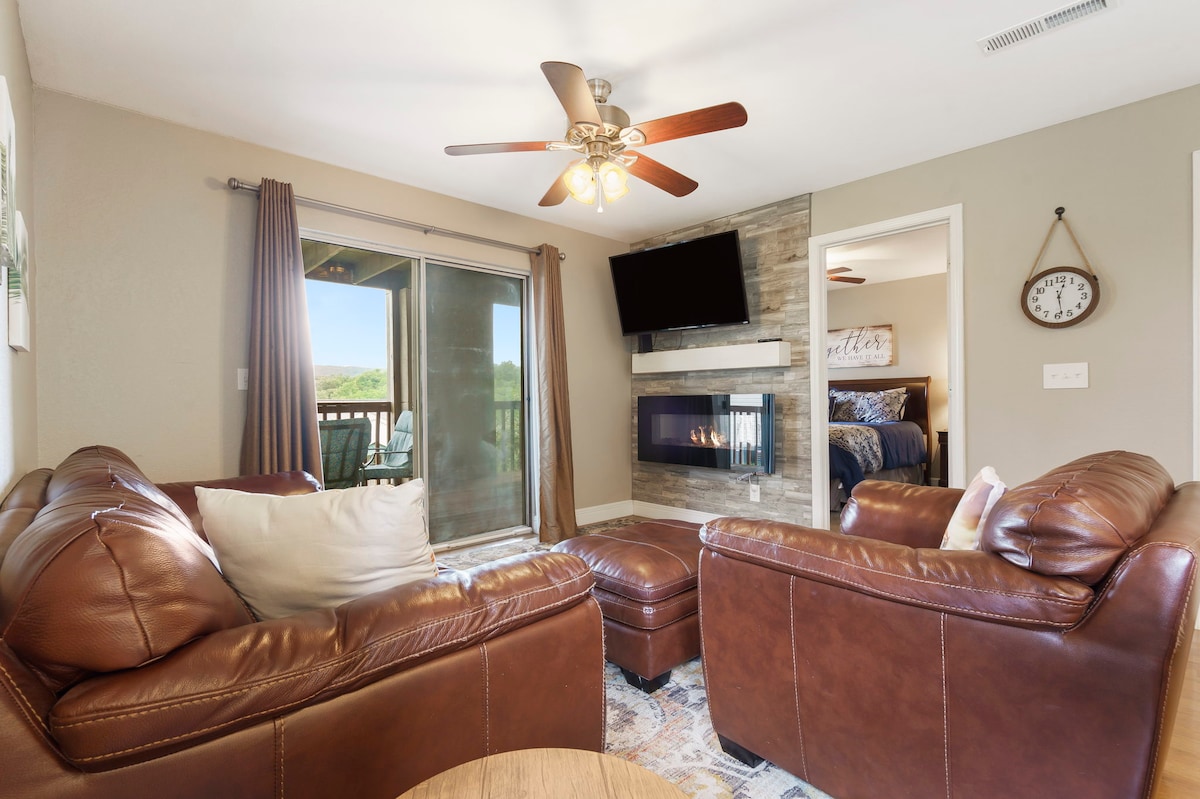 Με θολωτά ταβάνια, καθορισμένο χώρο εργασίας, γρήγορο wifi και μια απομονωμένη βεράντα, αυτό το διαμέρισμα 2 υπνοδωματίων/2 μπάνιων είναι η τέλεια απόδραση, είτε κάνετε δουλειά ανάμεσα σε περιπέτειες είτε είστε εκτός υπηρεσίας. Φωτεινή ανοιχτή διαρρύθμιση και όλα τα προνόμια: εποχιακή πισίνα και τζακούζι (συνήθως ανοιχτά από την Ημέρα Μνήμης έως την Ημέρα Εργασίας - ρωτήστε για τις ακριβείς ημερομηνίες), παιδική χαρά, αθλητικό γήπεδο, μονοπάτια και πρόσβαση στη λίμνη. Λεπτά μέχρι το Silver Dollar City.