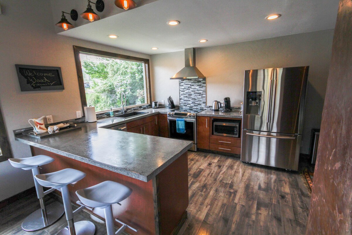 Welcome to the Cozy Wolf Lodge! Have fun with the whole family in this stylish, newly finished, two story condo. This condo features a full kitchen, spacious living room, two bedrooms & 2 bathrooms upstairs, and 1 half bath down stairs. After a busy day in the park you can relax with your family & watch a movie on our 65” Samsung 4k tv. We are located less than a mile from Yellowstone National park and within walking distance of everything in Gardiner! We are family owned & operated.