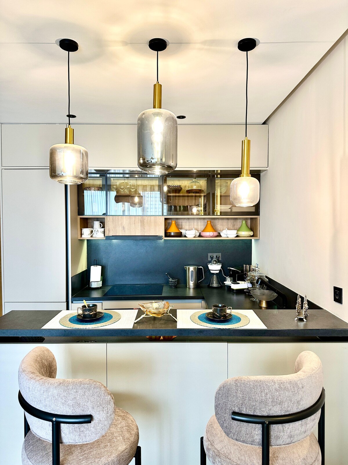 Σε ορισμένα διαμερίσματα αφήνετε απλώς τις βαλίτσες σας. Οι άλλοι είναι εκεί όπου καταθέτετε την ψυχή σας. Αυτό το κρυφό διαμάντι είναι το δεύτερο. Φωλιασμένο στην καρδιά της πιο ζωντανής γειτονιάς της Καζαμπλάνκα, αυτό το διαμέρισμα σχεδιάστηκε ως αντικείμενο επιθυμίας: μια σμαραγδένια πράσινη αψίδα με τζελέ, ένα τραπεζάκι σαλονιού από μασίφ ξύλο, χειροποίητα κεραμικά, ένας ροζ-μπεζ καναπές και αυτό το φως που πλημμυρίζει κάθε γωνιά. Το Μαρόκο που ονειρευόσαστε, με σύγχρονο design. Λεωφόρος Ζερκτούνι, λίγα βήματα από τους Δίδυμους Πύργους.