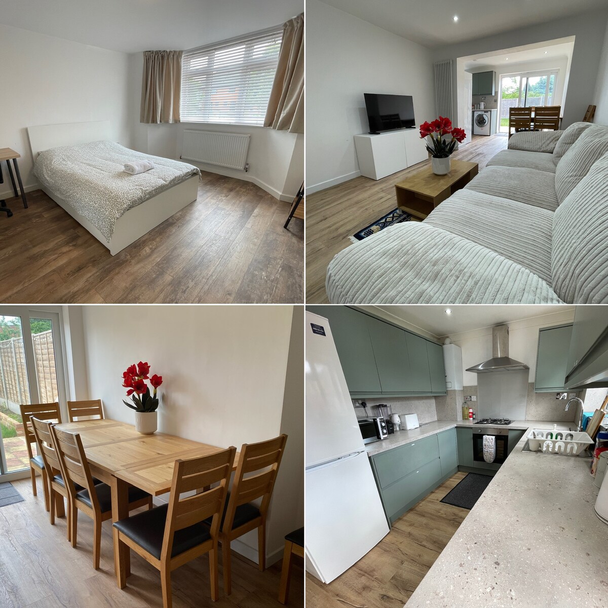 Nestled in a quiet suburb of Wokingham, our beautifully designed one-bedroom annex, offers the perfect blend of style and tranquility. This thoughtfully curated space is ideal for solo travelers or couples seeking a relaxing getaway without compromising on location or aesthetics. The Space consists of a bedroom, bathroom, and a living/Dining space: Amenities: High-speed Wi-Fi Smart TV Fully equipped kitchen Complimentary coffee and tea Luxury bed linens and towels Hairdryer