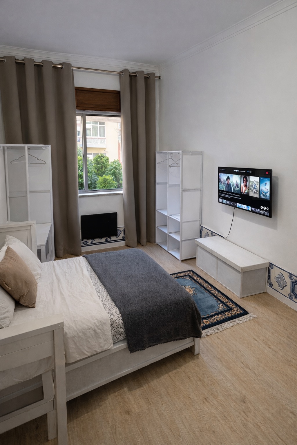 Room 5 | Step into a spacious room retreat, beautifully designed for both comfort and productivity. With a plush single bed and a dedicated workspace, it's your cozy corner in the heart of Lisbon Metropolitan Area. You'll enjoy the convenience of a shared fully-equipped kitchen, dining room, 2 shared bathrooms & complimentary Wi-Fi. Our prime location offers: - Train/metro station & bus terminal nearby - 16 min to Rossio & 12 min to Sete Rios - Supermarkets & restaurants