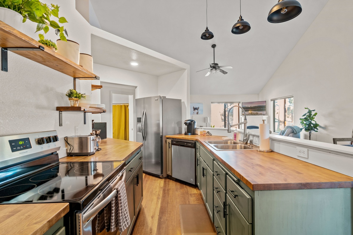 Κλασικό Pine Meadow Paradise! 3 υπνοδωμάτια και ένα επιπλέον ADU, αυτό αποτελείται από ένα υπέρδιπλο κρεβάτι, δύο διπλά κρεβάτια και δύο μονά κρεβάτια. Θα λατρέψετε όλο το φυσικό φως και τις γαλλικές πόρτες ακριβώς έξω από το σαλόνι. Πλήρως εξοπλισμένη κουζίνα με νησί. Το κύριο υπνοδωμάτιο έχει θέα στο βουνό, ντους από ψαμμίτη και μπανιέρα στον επάνω όροφο. Υπάρχει επίσης μια ιδιωτική βοηθητική μονάδα διαμονής πάνω από το γκαράζ που οι επισκέπτες μπορούν να χρησιμοποιήσουν ελεύθερα. Απολαύστε το κάθισμα στη βεράντα με το αγαπημένο σας ποτό με την οικογένεια και τους φίλους σας.