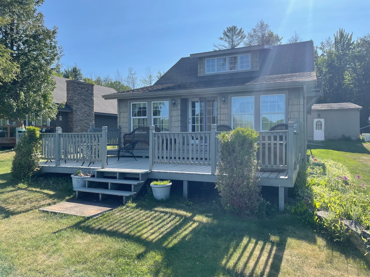 Το άνετο ξυλόσπιτο Cedar Cottage βρίσκεται σε μια χερσόνησο στην λίμνη East Bass, με θέα στη λίμνη από κάθε πλευρά. Υπέροχο ψάρεμα, κολύμπι, βαρκάδα, σκι, χιονοδρομία και οδήγηση μηχανής στο χιόνι ακριβώς έξω από την μπροστινή πόρτα. Αν χρειάζεστε μια χαλαρωτική απόδραση, καθίστε δίπλα στη φωτιά και απολαύστε τη θέα του AmAzInG. Κάντε σάουνα ή τζακούζι και μετά κάντε μια βουτιά στη λίμνη για να δροσιστείτε! Βρίσκεται 5 λεπτά από το Γκουίν και 25 λεπτά από το Μαρκέτ. Μονοπάτια μέσα σε λίγα λεπτά. Το εξοχικό μας σπίτι είναι η απόλυτη απόδρασή ΣΑΣ όλο το χρόνο, ελάτε να μείνετε για λίγο, αναζωογονήστε την ψυχή σας!