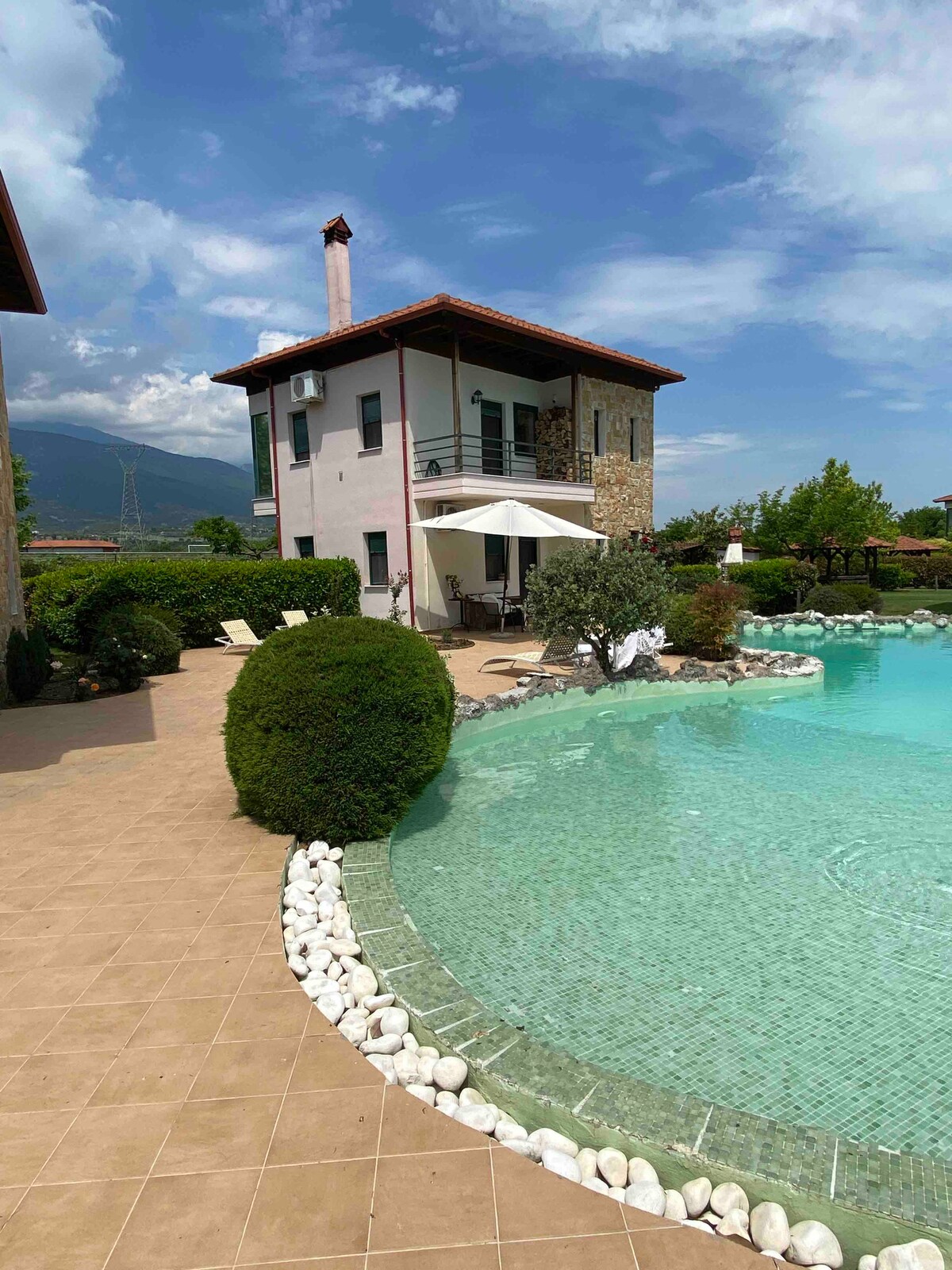 Escape to our beautiful countryside villa with breathtaking panoramic views of Mount Olympus and the Aegean Sea. Surrounded by lush landscaped Mediterranean gardens, it offers total privacy. The tastefully furnished home has 4 air-conditioned bedrooms, a living room, and 3 outdoor dining areas, perfect for relaxation, gatherings, or yoga retreats. Family friendly with a playground, it's designed with love, sustainability, and attention to detail—ideal for creating unforgettable memories.