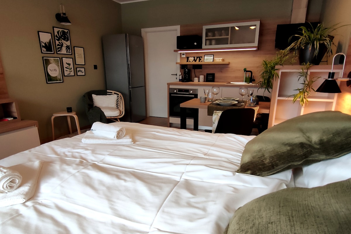 Φωτεινό, μοντέρνο διαμέρισμα στην καρδιά της Λιουμπλιάνα, ιδανικό για ζευγάρια ή μόνους ταξιδιώτες. Αυτό το κλιματιζόμενο διαμέρισμα 25 τ.μ. διαθέτει ένα διπλό κρεβάτι, ιδιωτικό μπάνιο με ντους και μια καλά εξοπλισμένη κουζίνα με εστίες μαγειρικής, ψυγείο, φούρνο μικροκυμάτων και καφετιέρα. Οι επισκέπτες μπορούν να απολαύσουν ιδιωτική βεράντα με θέα στην πόλη, ιδανική για χαλάρωση. Καταστήματα, καφετέριες και αξιοθέατα είναι λίγα βήματα μακριά. Διατίθεται πάρκινγκ επί πληρωμή σε απόσταση 100 μέτρων (15 €/ημέρα). Διατίθεται ευρωπαϊκό πρωινό με 15 € ανά άτομο.