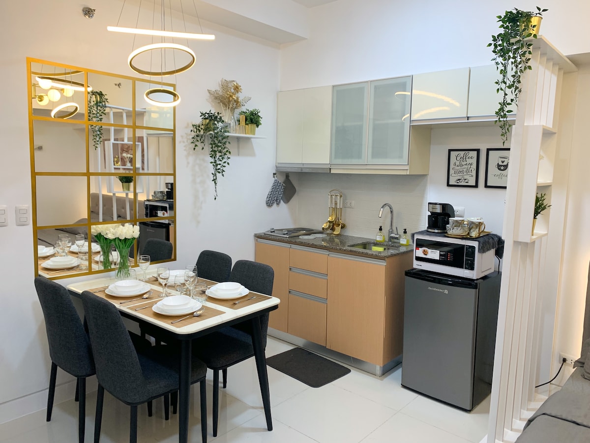 Fast Check in. No unnecessary waiting.Great for holiday, business, transit. Very close to airport. Centre of Uptown BGC. Everything you need is within 100m. Very walkable streets. Feels like NYC or Singapore. Uptown Mall has Branded Shops to 24hr food and Cinemas. 3 supermarkets nearby. Outdoor dining bistros, XYLO club. 50" Smart tv GFiber - 200Mbps Fridge Microwave Toaster Kettle Dining table Sofa Double size bed Hot/cold shower Towels Tissue Hair Dryer Pool (Tue to Fri)