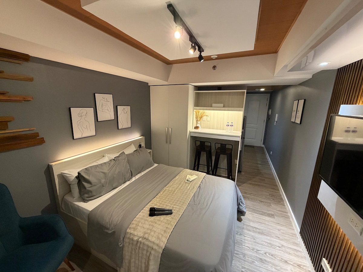 Καλωσορίσατε στο The Meydan Suites at Azure North, ένα στούντιο εμπνευσμένο από το Japandi στο Σαν Φερνάντο της Παμπάνγκα. Μόλις 1,5 ώρα από τη Μανίλα, το ευρύχωρο στούντιο 2 υπνοδωματίων διαθέτει πλήρως εξοπλισμένη κουζίνα, ένα μπάνιο και ιδιωτικό μπαλκόνι στην ήσυχη πλευρά του Azure. Με 200 ₱ ανά επισκέπτη ανά βάρδια, μπορείτε να απολαύσετε ανέσεις σε στυλ θέρετρου, όπως την πισίνα με κύματα, την πισίνα στην παραλία και τις εγκαταστάσεις αναψυχής. Είναι το ιδανικό καταφύγιο για ζευγάρια, οικογένειες ή παρέες.