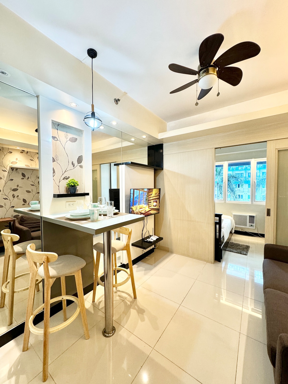 Cozy 1BR Condo w/ Balcony | 200Mbps Wi-Fi | Resort-Style Living Stay in a fully furnished, air-conditioned 26 sqm condo with a private balcony—offering comfort, privacy, and a homey feel at a great rate. Enjoy 200Mbps high-speed internet, perfect for remote work, video calls, streaming, and online tasks. Located in a Mall of Asia CBD with a resort-style vibe, this space is ideal for couples, solo travelers (on leisure or business), or small families looking for a relaxing yet productive stay.