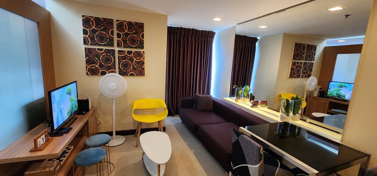 ⭐️Modern hotel-style living at Premier SMDC Fame Residences, Mandaluyong ☑️ 24.20 sqm fully furnished unit with comfy bed, aircon, fast Wi-Fi, Smart TV with Netflix, and karaoke ☑️ With hot shower and a functional kitchenette ☑️ Access to amenities like the swimming pool and 24/7 security ☑️ Prime location: walkable to SM Megamall, MRT-3 Shaw, and Shangri-La Plaza ☑️ Minutes away from major CBDs: BGC, Ortigas, and Makati ☑️ Ideal for business trips, staycations, and remote work